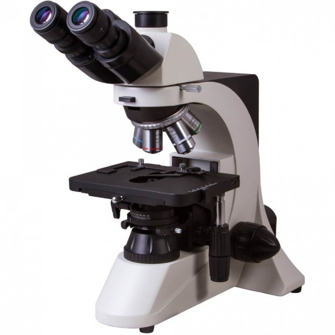 Тринокулярная насадка позволяет одновременно вести визуальные наблюдения и записывать исследования при помощи цифровой камеры. Камера (в комплект поставки не входит) устанавливается в отдельную окулярную трубку, расположенную вертикально. Визуальная часть наклонена под углом в 30°, что позволяет вести длительные наблюдения без перенапряжения мышц шеи. В револьверное устройство установлены планахроматические объективы – они создают плоское поле зрения, не вносят искажений в изображение, радуют высокой детализацией и контрастностью. Широкопольные окуляры позволяют работать даже с протяженными образцами. Грубая и точная фокусировки помогают точно настроить резкость картинки в любых условиях наблюдений.